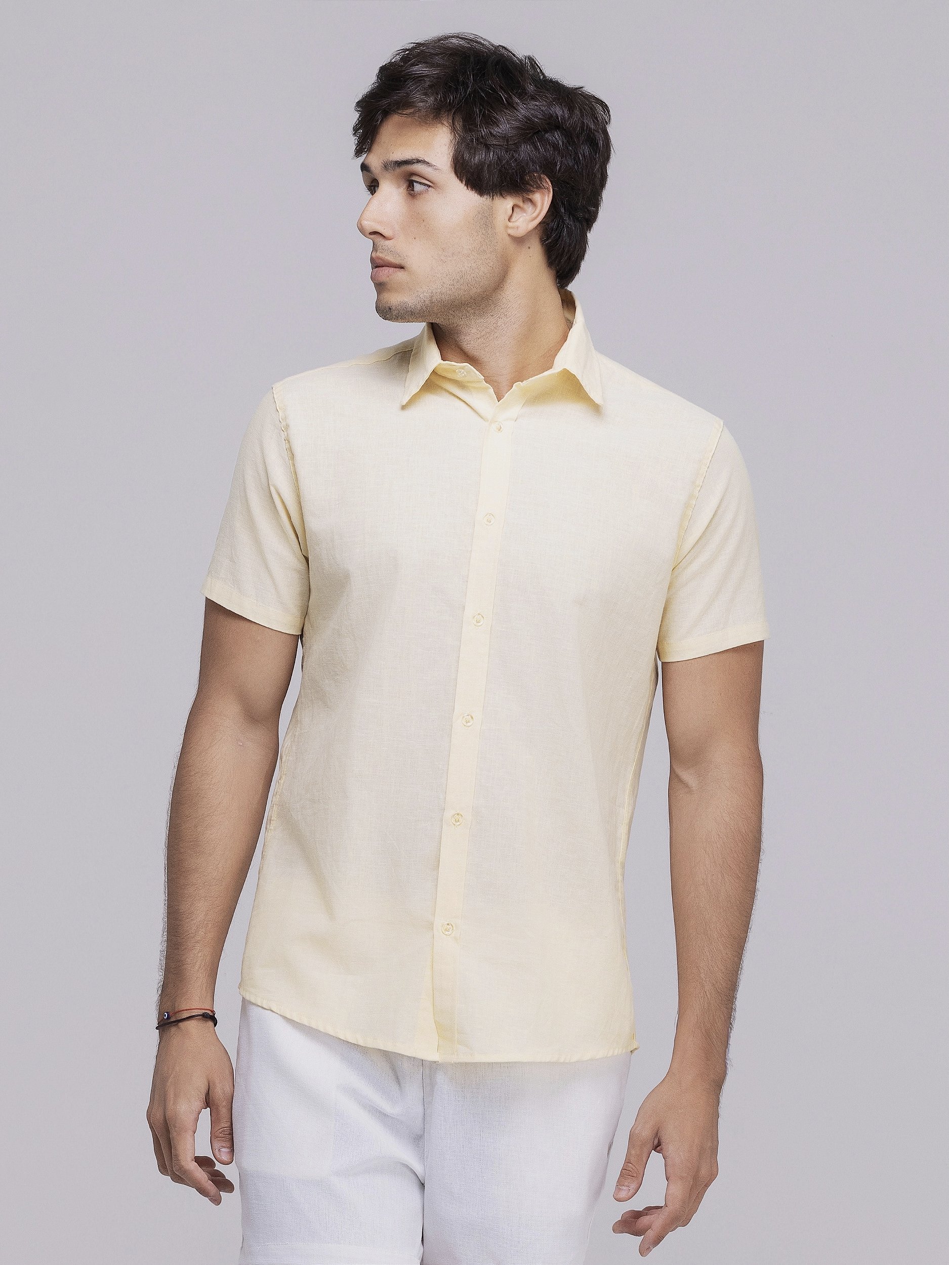 Camisa de botão com manga curta.