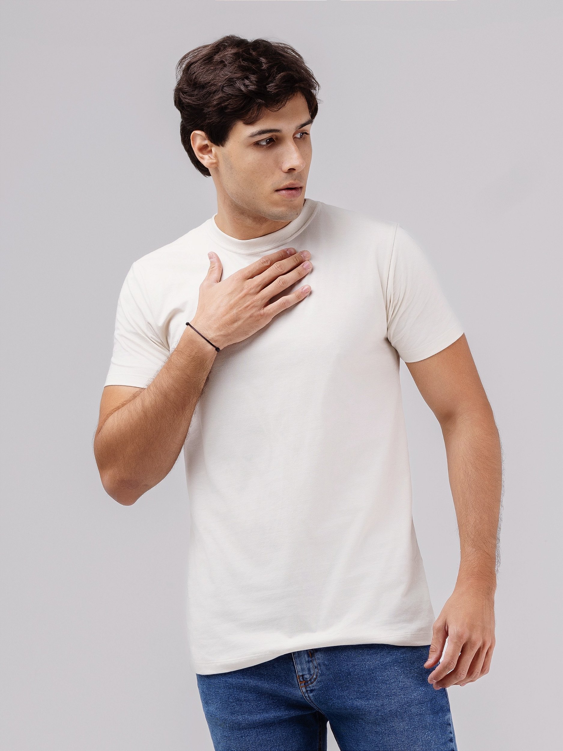 Camiseta off-white sem estampa.