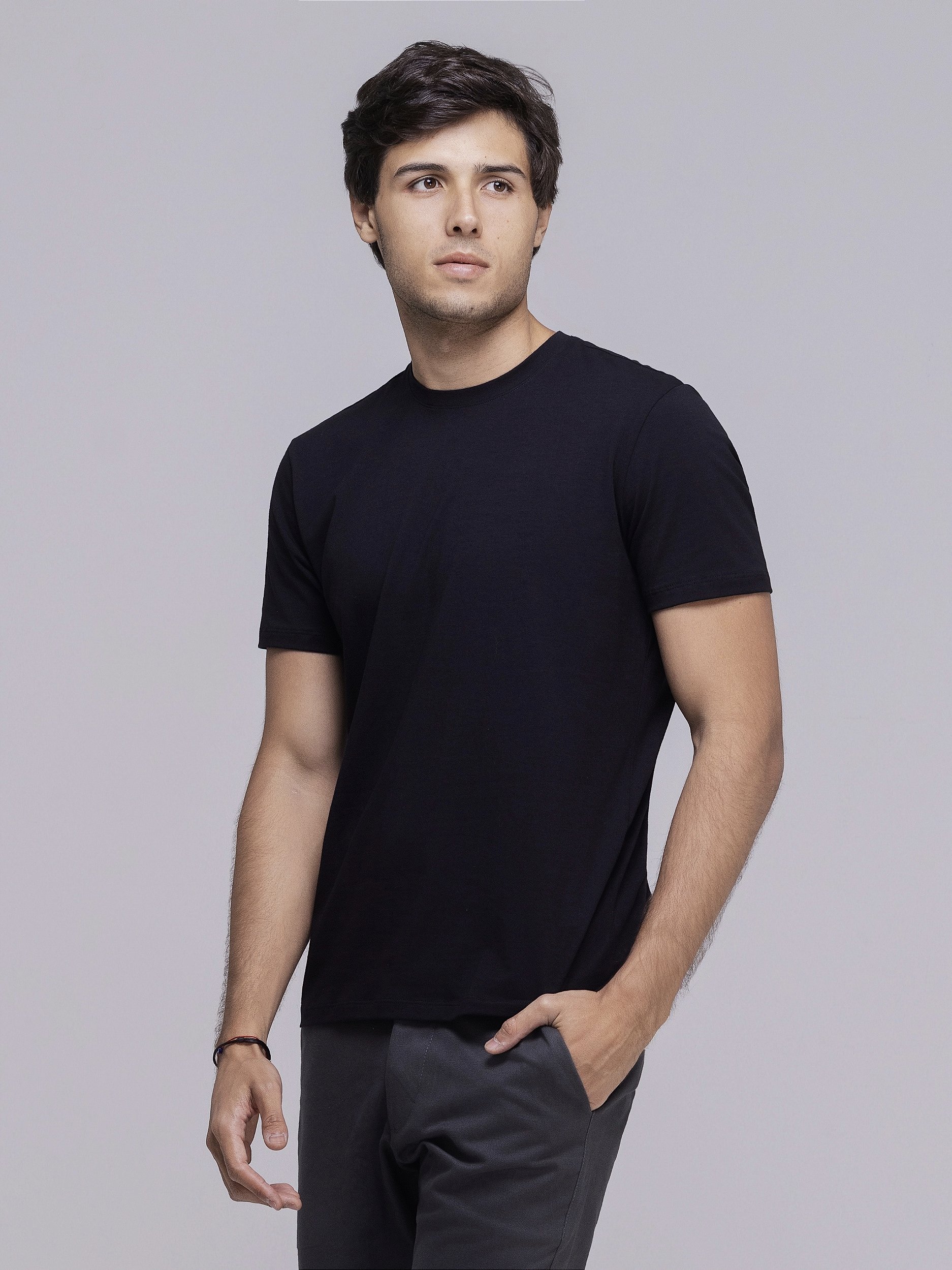 Composta por 96% algodão e 4% elastano, esta peça oferece um toque macio e respirável, ideal para quem busca o máximo de conforto no dia a dia, com a praticidade e versatilidade que uma camiseta sem estampa proporciona.